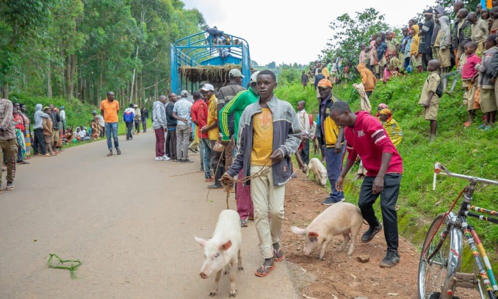 Le Projet d’Intensification de la Production Agricole et de Réduction de la Vulnérabilité (PIPARV-B), un projet financé par le FIDA, a distribué, ce 12 mai 2021, 640 porcins aux populations de Gatara, Kabarore, Kayanza et Matongo en province Kayanza. Objectif : réduire la pauvreté dans les familles. La joie se lisait sur les visages des bénéficiaires de ces porcins. La distribution concernait les familles les plus vulnérables qui ont une propriété ne dépassant pas 0,5 ha et qui ne domestiquent aucun animal. Ces familles ont généralement des lopins de terre, juste où construire une maisonnette et vivent du travail dans les champs de leurs voisins. Evelyne Niyonkuru, une mère de trois enfants qui a reçu un porcin explique qu’elle va se développer à l’instar de ses voisins grâce à ce don : « Je produirai plus dans … Lire la suite de Elevage : 640 porcins distribués à Kayanza